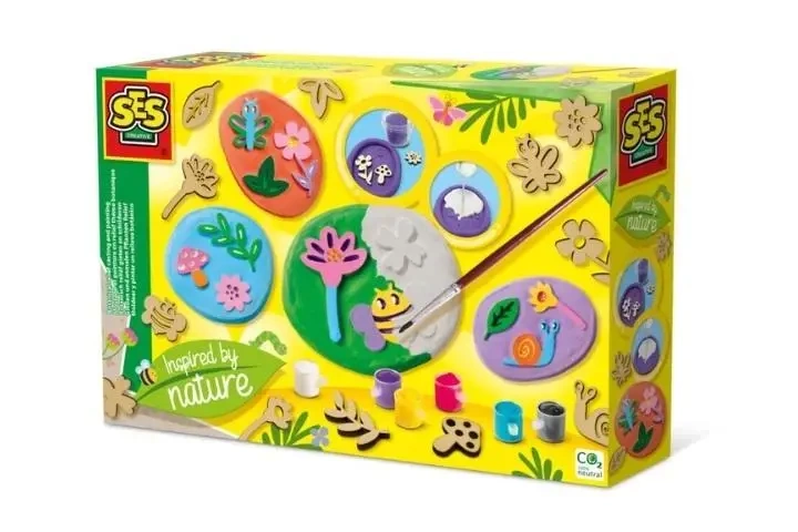 Zrób sam najpiękniejsze ozdoby gipsowe! Zestaw zawiera wyjątkowe drewniane szablony, które przedstawiają elementy natury takie jak zwierzęta, kwiaty czy grzyby. By stworzyć piękne gipsowe ozdoby wystarczy odcisnąć drewniane szablony w fioletowej masie a następnie zalać formę gipsem. Zestaw zawiera również farbki dzięki, którym możemy nadać koloru stworzonym dziełom. Godziny kreatywnej zabawy gwarantowane!