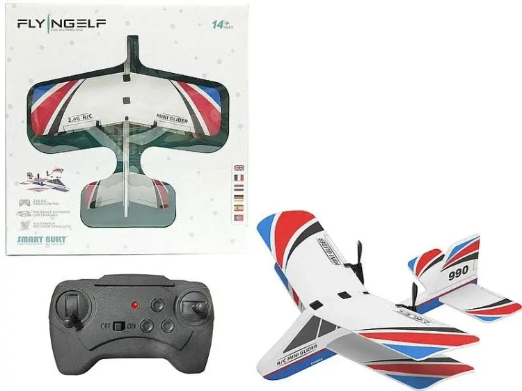 samolot na radio, z kablem USB, lekki z materiału EPP, start poziomy z rozpędu lub z ręki,; 28x27x9,5cm, W/B