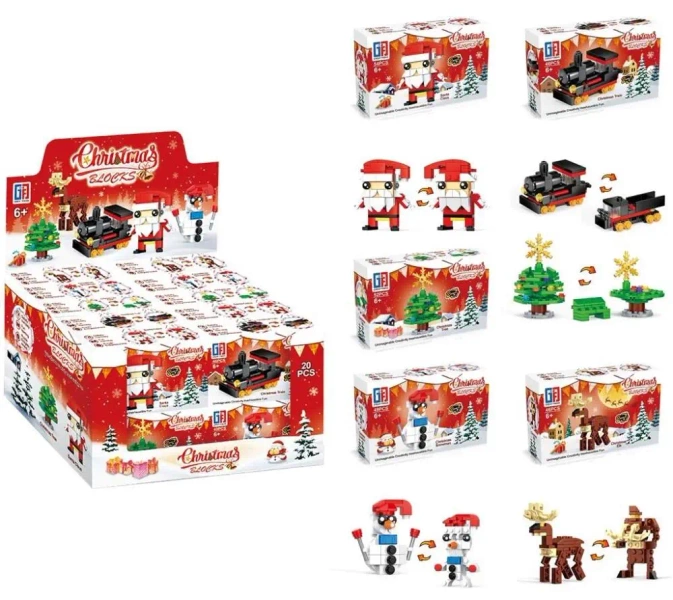 Zestaw klocków z których można zbudować motywy świąteczne zawierający ponad 45 elementów.