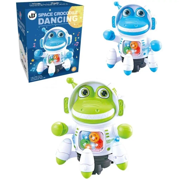 "Tańcząc krokodylek porusza wszystkimi łapkami i jeździ we wszystkich kierunkach. W rytm muzyki świecą kolorowe światełka. Całość wykonywana rytmicznie przyciąga uwagę i tworzy świetny efekt wizualny. Dodatkową atrakcją będzie zabawa przy zgaszonym świetle. Całej zabawie towarzyszy radosna melodia. Dodatkowym atutem krokodyla jest zdolność odbijania się od przeszkód,gdy napotka barierę zmienia kierunek jazdy - funkcja BUMP&GO."