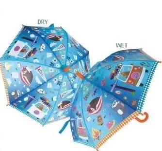 Podaruj swojemu maluchowi możliwość przeżywania niezapomnianych przygód podczas deszczowych dni dzięki niezwykłej parasolce, która zmienia kolory! Kiedy tylko zacznie padać, białe wzory na parasolce zamieniają się w kolorowe obrazy z bajkowego świata, rozweselając nawet najbardziej szare dni. Gdy parasolka wyschnie, kolory powracają do bieli.
