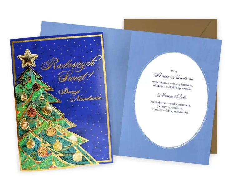 Kartka Dream Cards DK-1191. Kartka B6 z ozdobnej serii Dream Cards na Boże Narodzenie - nieduża, ale robi wrażenie dzięki atrakcyjnej kolorystyce i ciekawym zdobieniom. To idealny wybór łączący przyjazną cenę z jakością. Cechy szczególne: wielkość: B6, 16.6 x 11.7 cm po złożeniu, koperta: w zestawie, kolorowa, zdobienia: różnorodne, bogate (w zależności od wzoru: przyklejane dekoracje, elementy biżuteryjne, odstawniki, brokat metaliczne folie, tłoczenia itp.), okazja: Boże Narodzenie.