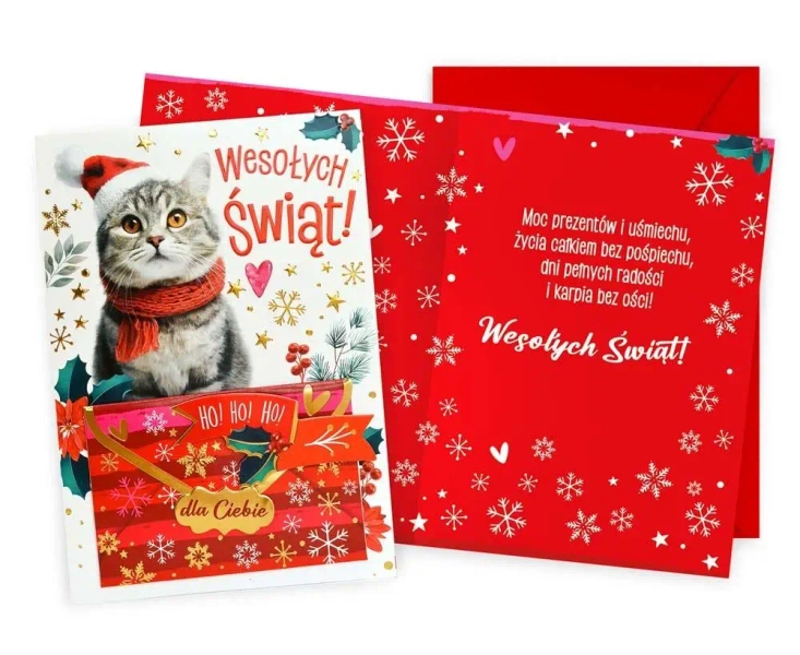 Kartka Dream Cards DK-1193. Kartka B6 z ozdobnej serii Dream Cards na Boże Narodzenie - nieduża, ale robi wrażenie dzięki atrakcyjnej kolorystyce i ciekawym zdobieniom. To idealny wybór łączący przyjazną cenę z jakością. Cechy szczególne: wielkość: B6, 16.6 x 11.7 cm po złożeniu, koperta: w zestawie, kolorowa, zdobienia: różnorodne, bogate (w zależności od wzoru: przyklejane dekoracje, elementy biżuteryjne, odstawniki, brokat metaliczne folie, tłoczenia itp.), okazja: Boże Narodzenie.