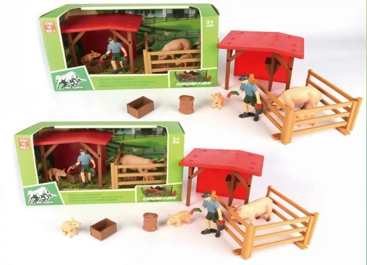 W zestawie: figurka rolnika, 3 figurki owcy, pasza, koryto, zagroda z 2 płotkami, wys. figurki 9 cm, wym. opak. 34 x 14 x 15 cm, 3+