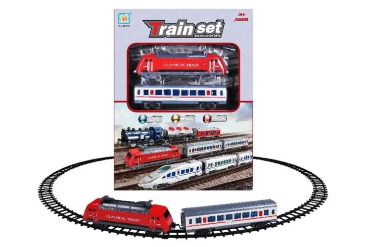 W zestawie: lokomotywa, wagonik, 12 elementów toru, funkcje: po włączeniu jedzie do przodu, wydaje odgłosy pociągu, migające przednie światła, dł. pociągu z wagonikami 46 cm, śr. toru po rozłożeniu 100 cm wym. opak. 41 x 31,5 x 6 cm, baterie 2 x aa (lokomotywa) niedołączone, 3+