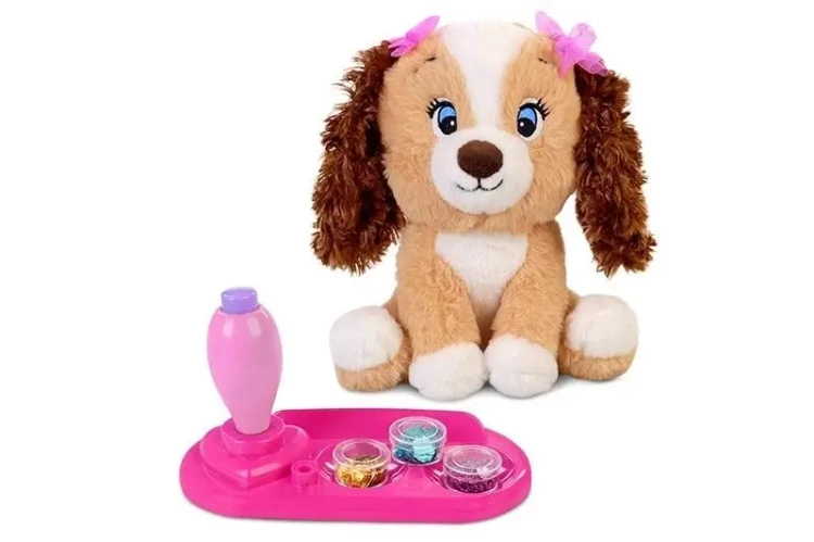W zestawie: piesek pluszowy, 3 pojemniczki z cekinami, aplikator, grzebień, podstawka, funkcje: po naciśnięciu na brzuszek piesek szczeka, nakładanie cekinów przy pomocy aplikatora, wym. opakowania: 24 x 24 x 16 cm., bateria: 3 x AG załączone testowe, 3+