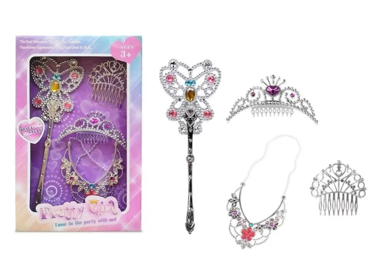 W zestawie: tiara do wpięcia we włosy, różdżka, kolia, ozdoba do włosów, Pozostałe informacje: wym. opak. 29 x 19 x 3 cm, 3+