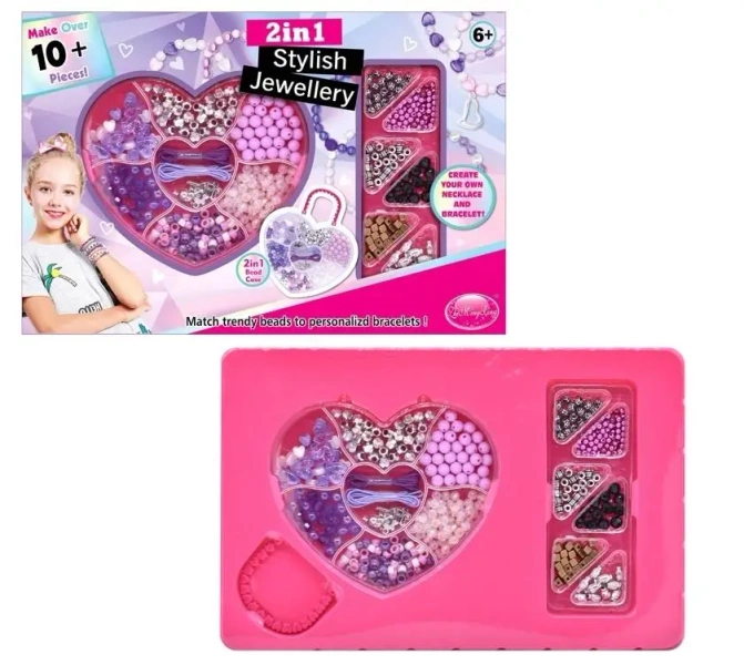 W zestawie: plastikowe pudełko w kształcie serca z uchwytem, 12 rodzajów koralików, 2 sznurki, 4 zawieszki, Pozostałe informacje: wym. opak. 30 x 19,8 x 3,5 cm,