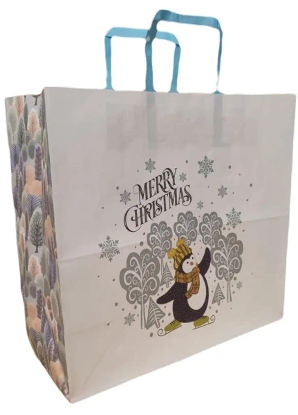 Torebka biała KRAFT 320x300x150 Święta Pingwin - Fresh