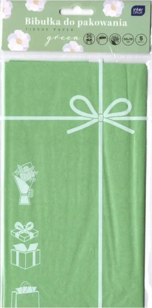 Bibułka do pakowania 50x70cm 5 arkuszy zielona - INTERDRUK