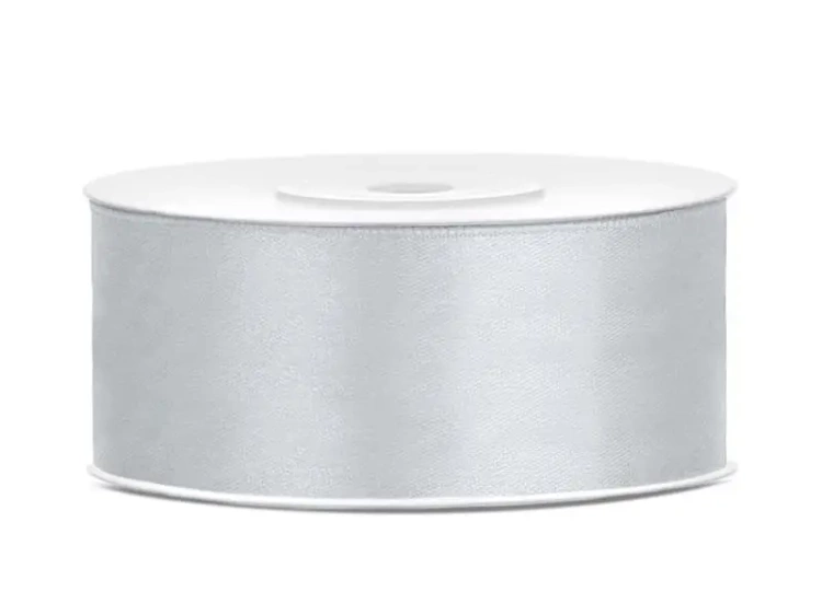 Tasiemka satynowa srebrna 25mmx25m - PartyDeco