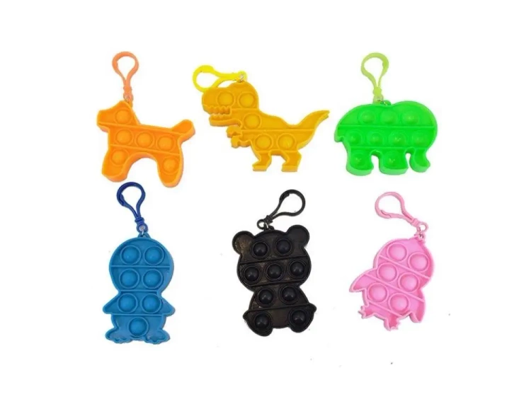 Niezwykle popularna zabawka, która zachowuje się jak folia bąbelkowa wielokrotnego użytku w wersji breloczka. Pokryta małymi bąbelkami, które po wciśnięciu do środka wydają satysfakcjonujący dźwięk pop. Po jednym naciśnięciu bańka pojawia się po drugiej stronie, gotowa do strzelania od nowa. Fidget Breloczek Push Popper w różnych zwierzęcych kształtach.