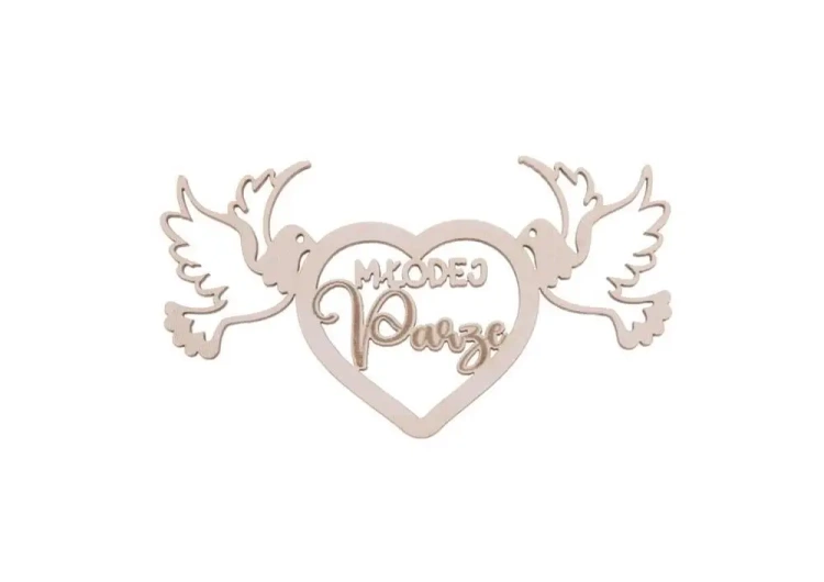 Drewniane serce z gołębiami i napisem - Młodej parze - 5 sztuk - Cresco