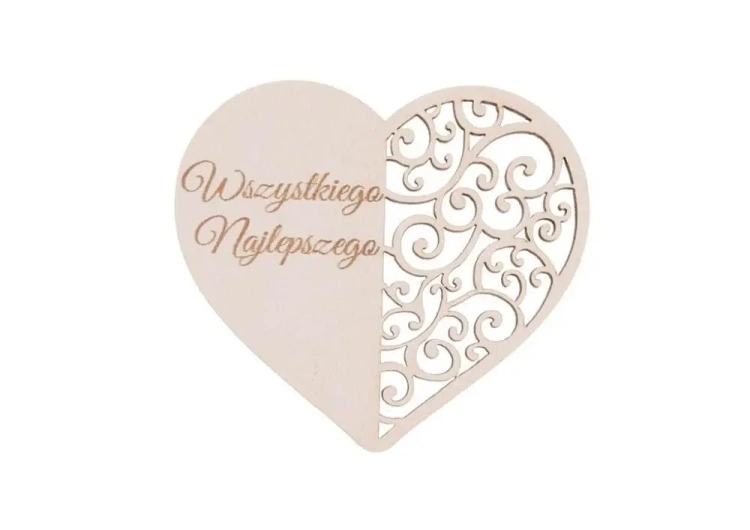 Drewniany napis (wzór na zdjęciu) wycięty precyzyjną techniką laserową z białej płyty HDF. Jego wykorzystanie zależy tylko od inwencji twórczej klienta, ma wiele zastosowań od tradycyjnych dekoracji florystycznych, przez ciekawe udekorowanie różnego rodzaju prezentów. Ten drobny dodatek podkreśli wyjątkowy charakter uroczystości lub będzie doskonałym akcentem na prezencie.