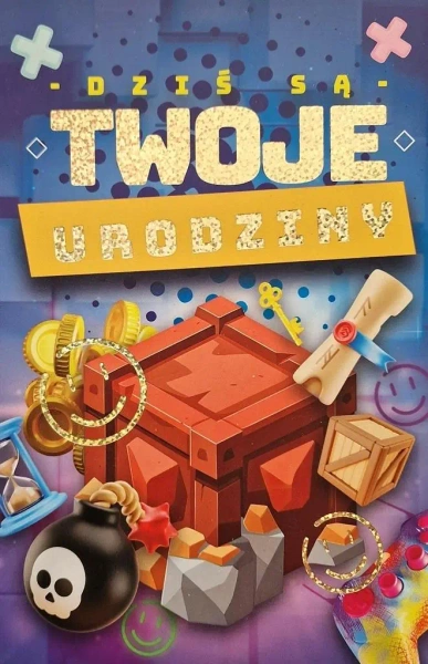 Karnet 2k. Klasyczny karnet na urodziny dla miłośników gier komputerowych i nie tylko. Uszlachetniony wysokiej jakości hotstampingiem ( złocenie ). Karnet zawiera życzenia.