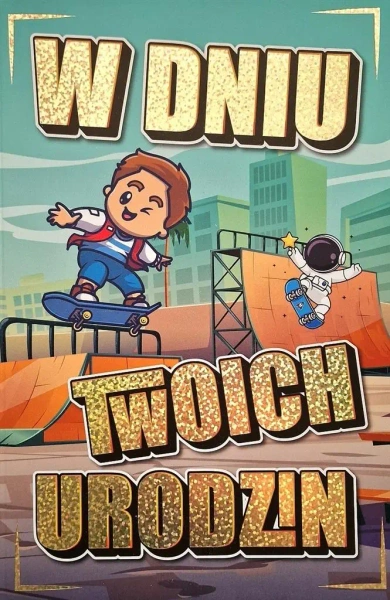 Karnet 2k. Klasyczny karnet na urodziny dla chłopca. Uszlachetniony wysokiej jakości hotstampingiem ( złocenie ). Karnet zawiera życzenia.