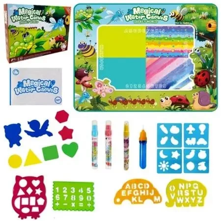 Odkryj wielofunkcyjną zabawkę artystyczną, która wprowadzi dzieci w fascynujący świat malowania bez tradycyjnych farb. Ta innowacyjna mata wodna, zdobiona uroczymi motywami zwierząt i owadów, daje możliwość tworzenia niezwykłych obrazków w czysty i uporządkowany sposób.