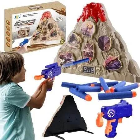 Elektryczna tarcza w formie wulkanu stanowi centralny punkt gry. Dinozaury umieszczone na tarczy są celami, do których dzieci strzelają, zdobywając punkty. Strzelając do dinozaura na środku zdobywa się 2 punkty, trafienie w pozostałe dinozaury zapewnia 1 punkt. Zestaw oferuje dwa tryby gry, pierwszy jest nieograniczony czasowo, natomiast drugi to dwuminutowe odliczanie.