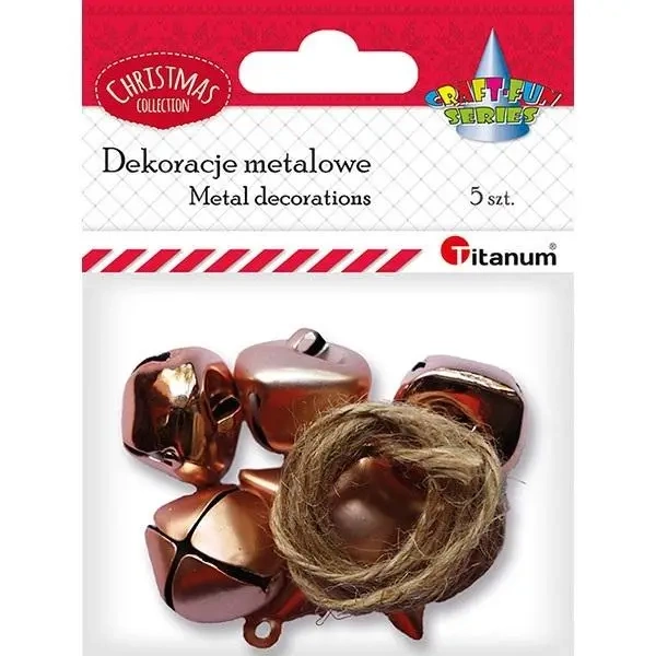 Dekoracje metal dzwoneczki gwiazdka + sznurek 5szt - Titanum