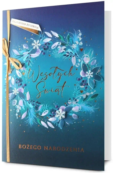 Kartka jest bogato i różnorodnie zdobiona (zależnie od wzoru: metaliczna folia, lakier perłowy,