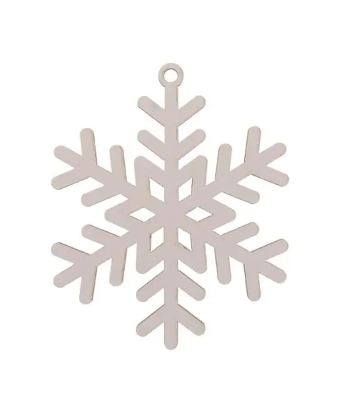 Drewniana śnieżynka w kształcie płatku śniegu biała. Średnica 8cm, wysokość całkowita 9cm. W opakowaniu 3szt