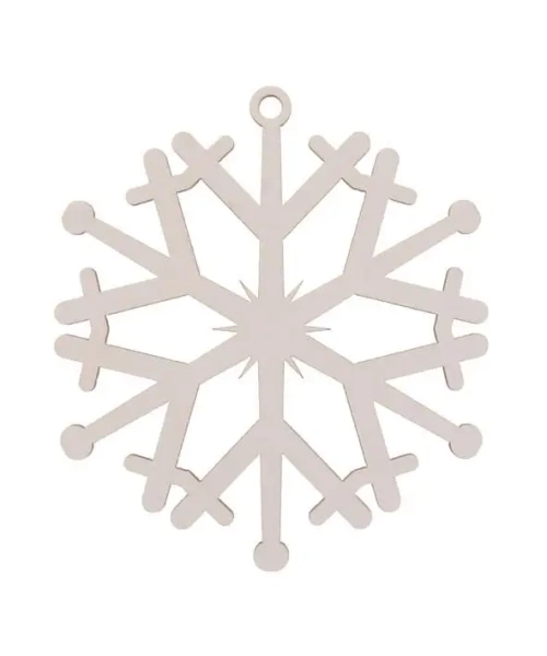 Drewniana śnieżynka biała. Średnica 8cm, wysokość całkowita 9cm. W opakowaniu 3szt