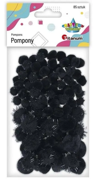 Pompony akrylowe i brokatowe 85szt czarne - Titanum
