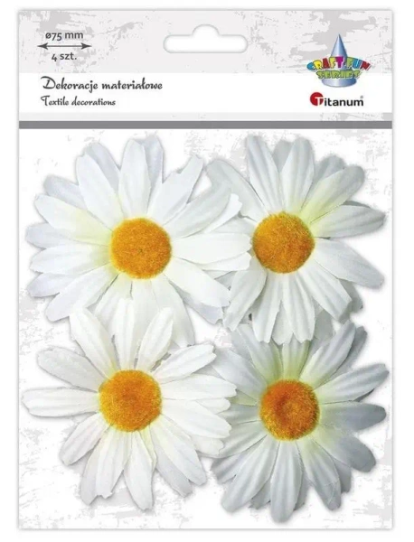 Materiałowe margerytki 3D 75mm białe 4szt - Titanum