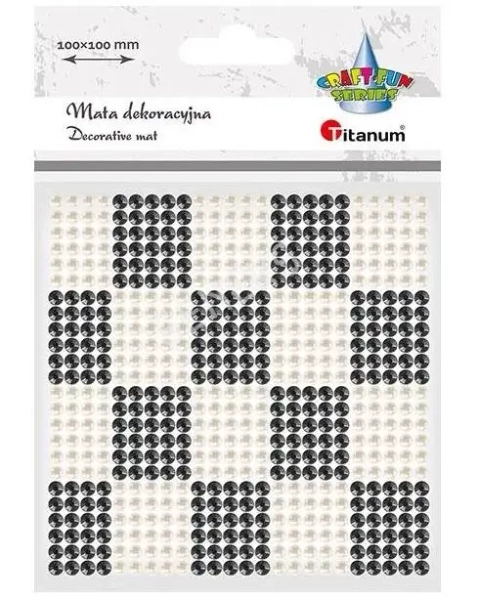 Mata dekoracyjna 100x100mm z perełkami białymi (średnica 4mm) i kryształkami czarnymi (średnica 3,5mm)