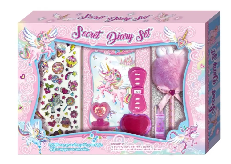 W zestawie znajduje się ozdobny długopis, który dodaje uroku każdemu wpisowi. Dodatkowo, użytkownicy mają możliwość personalizacji swojego pamiętnika dzięki zestawowi akcesoriów do dekoracji.