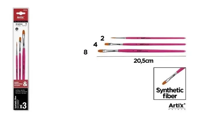 Oferujemy zestaw trzech płaskich pędzli syntetycznych, które doskonale sprawdzą się zarówno dla amatorów, jak i profesjonalistów. Dzięki swojej uniwersalności, są idealne do różnorodnych technik malarskich.