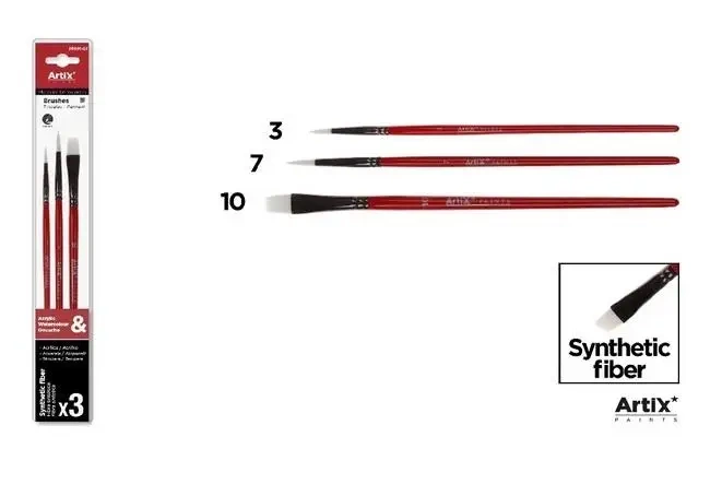 Pędzle syntetyczne miękkie 3szt - Artix