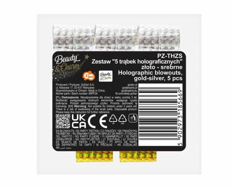 TRĄBKI GWIZDKI HOLOGRAFICZNE ZŁOTO-SREBRNE