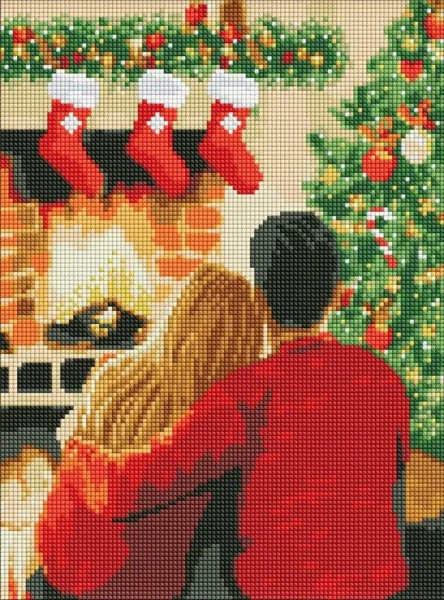 Diamentowa mozaika - Dwoje przy kominku 30x40cm - Ideyka