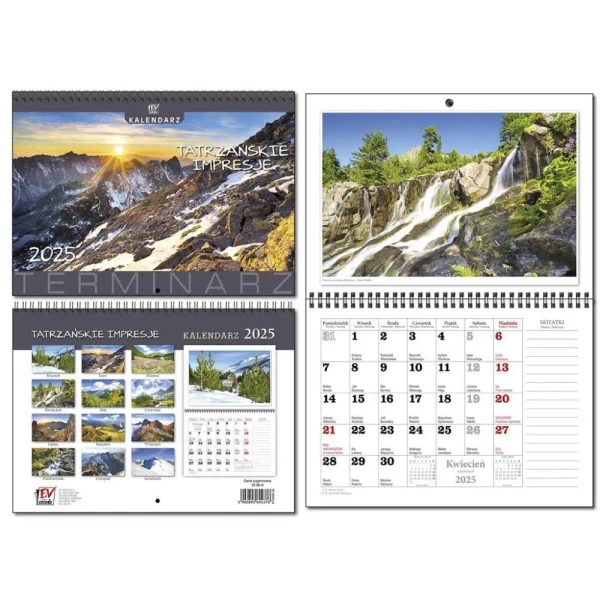 Kalendarz 2025 A4 terminarz 13 plansz Tatry - EV-Corp