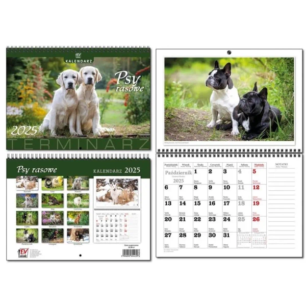 Kalendarz 2025 A4 terminarz 13 plansz Psy rasowe - EV-Corp