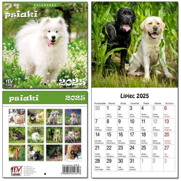 Kalendarz 2025 dla dzieci 16x32 13 plansz Psiaki - EV-Corp