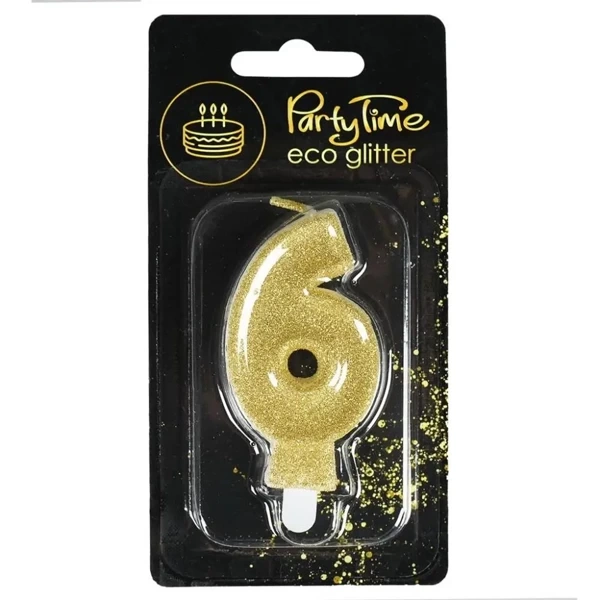 Świeczka cyferka z eko-brokatem nr 6