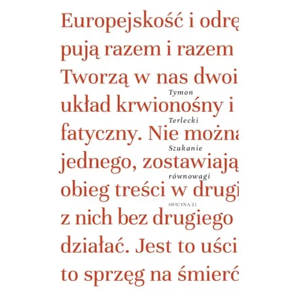 Ogłoszony przeszło 30 lat temu w Londynie zbiór "szkiców literackich i publicystycznych" - jak go skromnie nazywał Tymon Terlecki - stale zadziwia bogactwem i aktualnością tematyki. Zgromadzone w nim eseje tworzą swoistą panoramę kultury europejskiej, a zarazem jedną z najgłębszych diagnoz polskiej tożsamości. Dotyczą zagadnień pozornie odległych - spraw czysto literackich (studia o Mickiewiczu, Norwidzie, Conradzie, Wierzyńskim, Bobkowskim, Kołakowskim, Valérym, Eliocie i Thomasie), malarstwa (błyskotliwe interpretacje dzieł Kossowskiego i Bohusza-Szyszki), biografii duchowej Kopernika, genezy chrześcijańskiego socjalizmu, okrucieństw drugiej wojny światowej i psychologii zła (wstrząsająca "modlitwa samotnego chrześcijanina" spisana wkrótce po upadku powstania w warszawskim getcie), wreszcie i najpilniejszych powinności moralnych Drugiej Emigracji. Łączy jednak te szkice więź trwała i mocno wyczuwalna. Wszystkie wyrastają z potrzeby odnalezienia równowagi między kulturami Europy i całego świata, zwłaszcza między kulturą europejską i kulturą polską. Głoszą konieczność zachowania europejskiej "jedności w różnorodności", służenia Europie "przez swoją odrębność", wytrwania w kulturze europejskiej "na przekór jej samej". W kontekście współczesnych debat na temat kształtu polskiej bytności we wspólnej Europie Szukanie równowagi stanowi lekturę nie tylko ożywczą i inspirującą, ale wprost niezbędną dla zrozumienia ideowego etosu Polaka-Europejczyka.