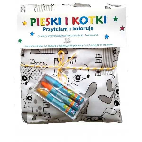 Cudowna mięciutka książeczka dla maluszka z przyjaznej bawełny, sensoryczno-manualna. Do dotykania, przytulania, oglądania i kolorowania. Zawiązywana na sznureczek. W przyjaznej dziecku kolorystyce z kontrastowymi elementami czerni i bieli. Książeczkę można pięknie pokolorować przy pomocy dołączonych pasteli. Książeczki materiałowe kontrastowe rozwijają wyobraźnię, dostarczają bodźców, pobudzają zmysły malucha i stymulują jego rozwój.