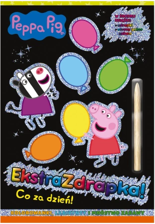Peppa Pig. Ekstrazdrapka to atrakcyjna książka wspomagająca zdolności manualne u dzieci. Zawiera kolorowanki, labirynty, kolorowe strony do zdrapywania oraz rysik. Wystarczy rysikiem zdrapać farbę, aby pojawiły się błyszczące obrazki lub wielobarwne ilustracje z Peppą, jej rodzinką i przyjaciółmi.
