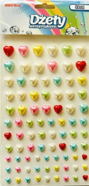 Dżety samoprzylepne serca perłowe 84szt - Brewis