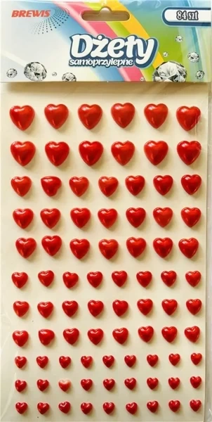 Dżety samoprzylepne czerwone serca 84szt - Brewis