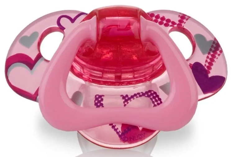 Firma Nuby opracowała szerkoką gamę stylowych, dyskretnych i modnych smoczków do uspokajania, które są wykonane zgodnie z najwyższymi wymogami norm bezpieczeństwa i 100% wolne od BPA. Wszystkie smoczki posiadają opantetowane guzki, które masują, koją i dają ulgę dziąsłom, a także silikonowe lub lateksowe bańki w kształcie ortodontycznym, wisienki oraz klasycznym - owalnym.