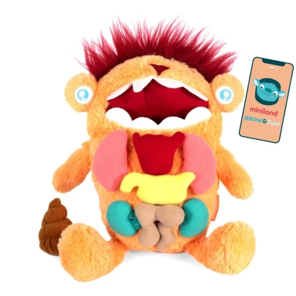 Dzieci będą miały niekończącą się zabawę odkrywając niesamowite rzeczy, które my, ludzie, mamy w naszych ciałach. Ten fantastyczny, miękki w dotyku, uroczy mały potworek ma 5 jasno kolorowych organów z miękkiej tkaniny: serce, płuca, nerki, żołądek i jelita. Należy wyciągnąć je z buzi stworka i umieścić w odpowiednim miejscu na jego ciele.