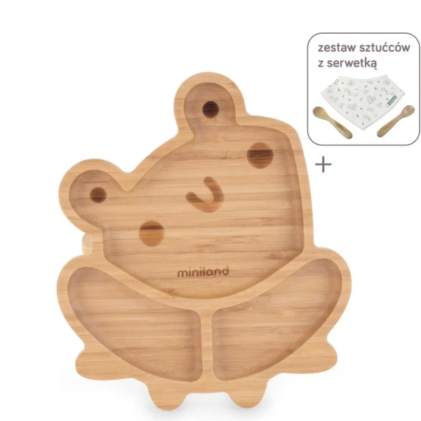 Drewniany talerzyk z przyssawką i przegródkami do karmienia metodą BLW ECO-friendly - Żabka