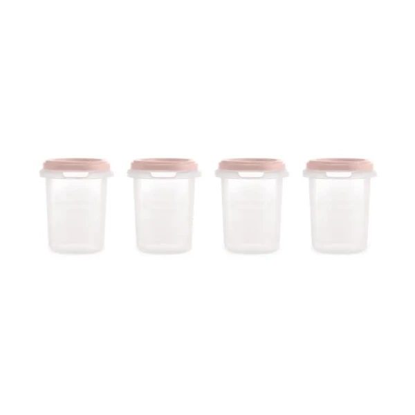 Kompletny zestaw 4 hermetycznych pojemników z podziałką o pojemności 250 ml każdy, z pokrywkami w kolorze cukierkowym. Szczególnie polecany do przechowywania, podgrzewania, zamrażania lub transportu mleka matki, pierwszej kaszki dziecka, a także wszelkiego rodzaju pokarmów stałych i płynnych.