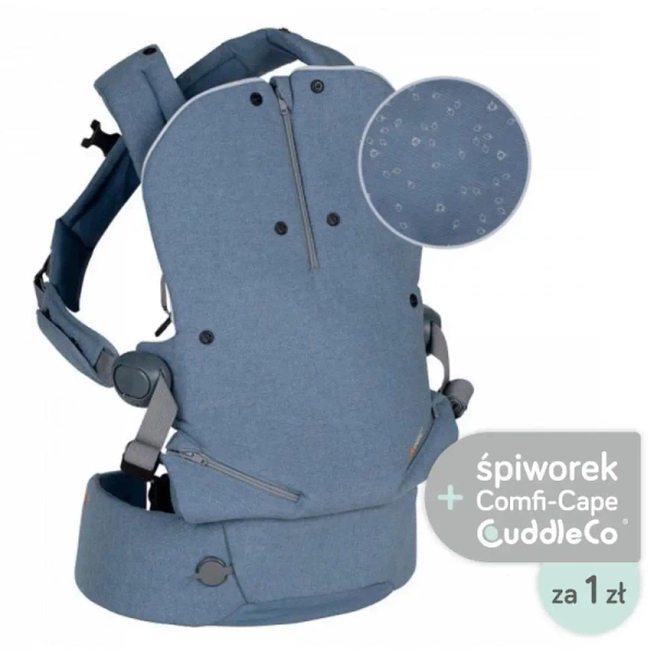 - Specjalne, elastyczne materiały pozwalają na idealne dopasowanie kształtu nosidełka do ciała dziecka.