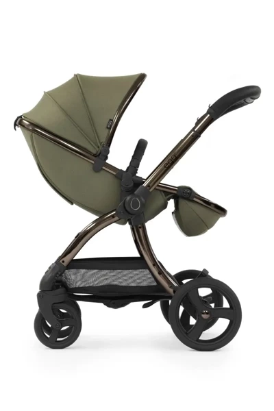 Nowy design stelaża Egg2 posiada regulowaną rączkę o długości 99 – 111cm i został ozdobiony odnowionym emblematem Egg. Składany jedną ręką stelaż Egg2 jest kompaktowy i wolnostojący po złożeniu, a jego rączka nigdy nie opiera się o ziemię.