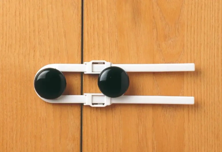 Zamknięcie zabezpieczające Dreambaby ogranicza dostęp dzieci do szafek.